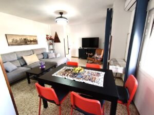 La vivienda se distribuye en espacios amplios y muy bien definidos. Dispone de un elegante salón independiente que ofrece dos ambientes diferenciados —zona de estar y comedor—, conectados con una amplia terraza, perfecta para disfrutar del clima Chipionero. Su entrada ofrece sin duda una precisa intimidad para recibir las visitas, La cocina, también independiente y con gran tamaño, incluye una zona destinada a lavadero, aportando una funcionalidad excepcional. La zona de descanso se compone de tres dormitorios dobles con armarios empotrados, cuenta además con dos baños completos.